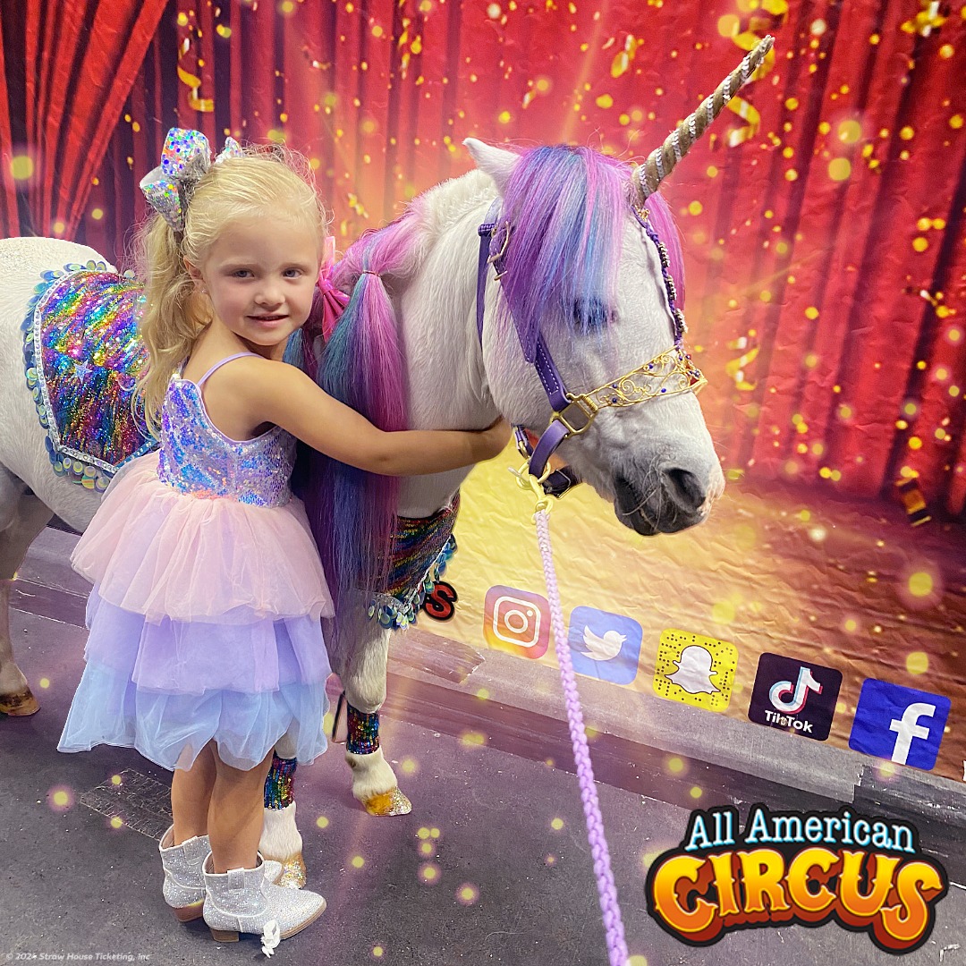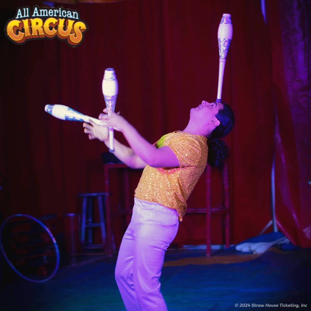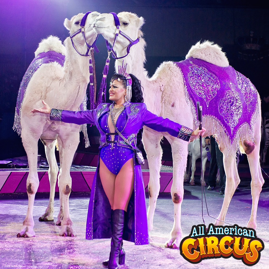 The All American Circus, delivers a 90-minute, family-friendly spectacle in indoor venues across the U.S.. Featuring the Rosales family’s thrilling acts—juggling, trapeze, and perch pole stunts—alongside clowns and knife balancers, the circus captivates all ages. Not to miss is the motrocycle globe of desinty and our all star animal performers -camels, peonies and more! Pre-show fun includes face painting and treats like cotton candy. These vibrant performances, brings the classic American circus to life, uniting communities in the center ring!